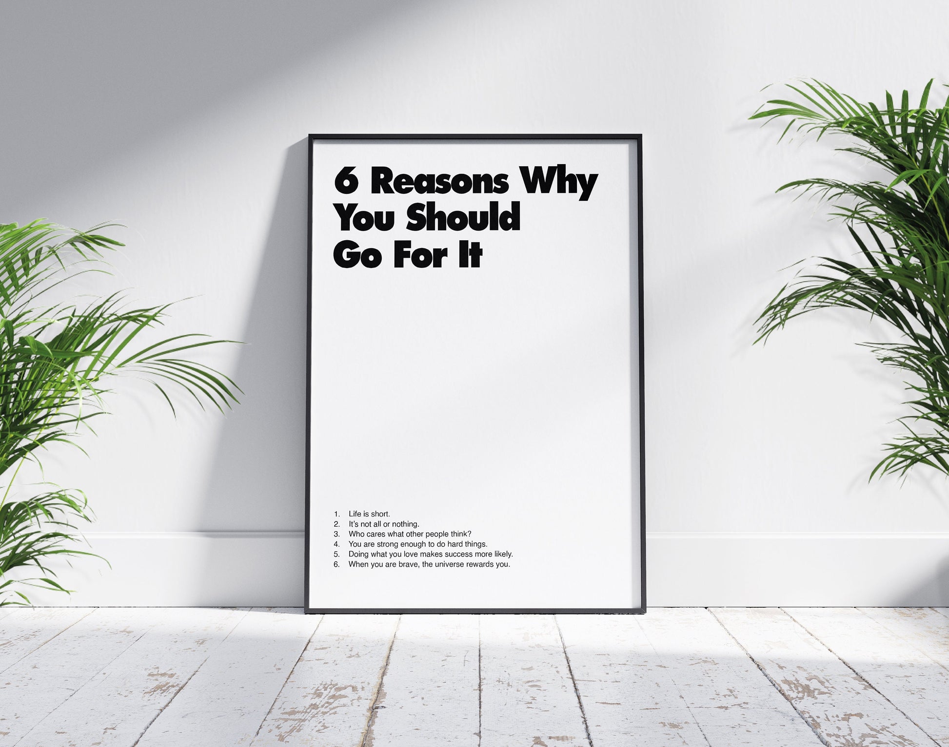 6 Reasons | Retro Poster, Minimalist, Wall Decor, Motivational poster, Inspirational Wall art, Motivation, Office Poster, Home Décor