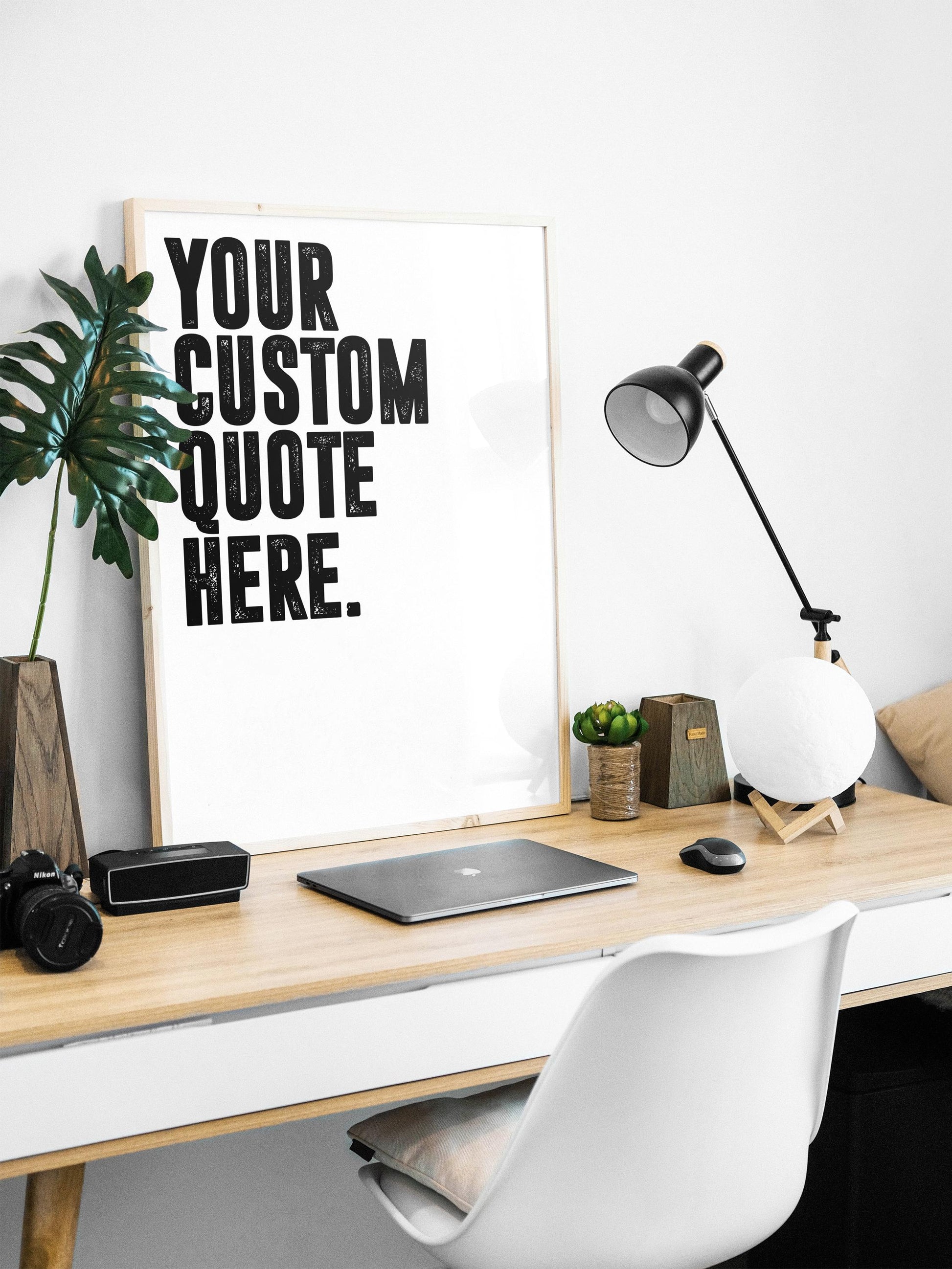Elevate your space with a custom motivational wall print! Personalize it with your favourite quote or mantra to inspire and uplift. Perfect for home, office, or as a thoughtful gift. Choose your size, colour, and text. Printed on premium quality paper for a lasting impact!