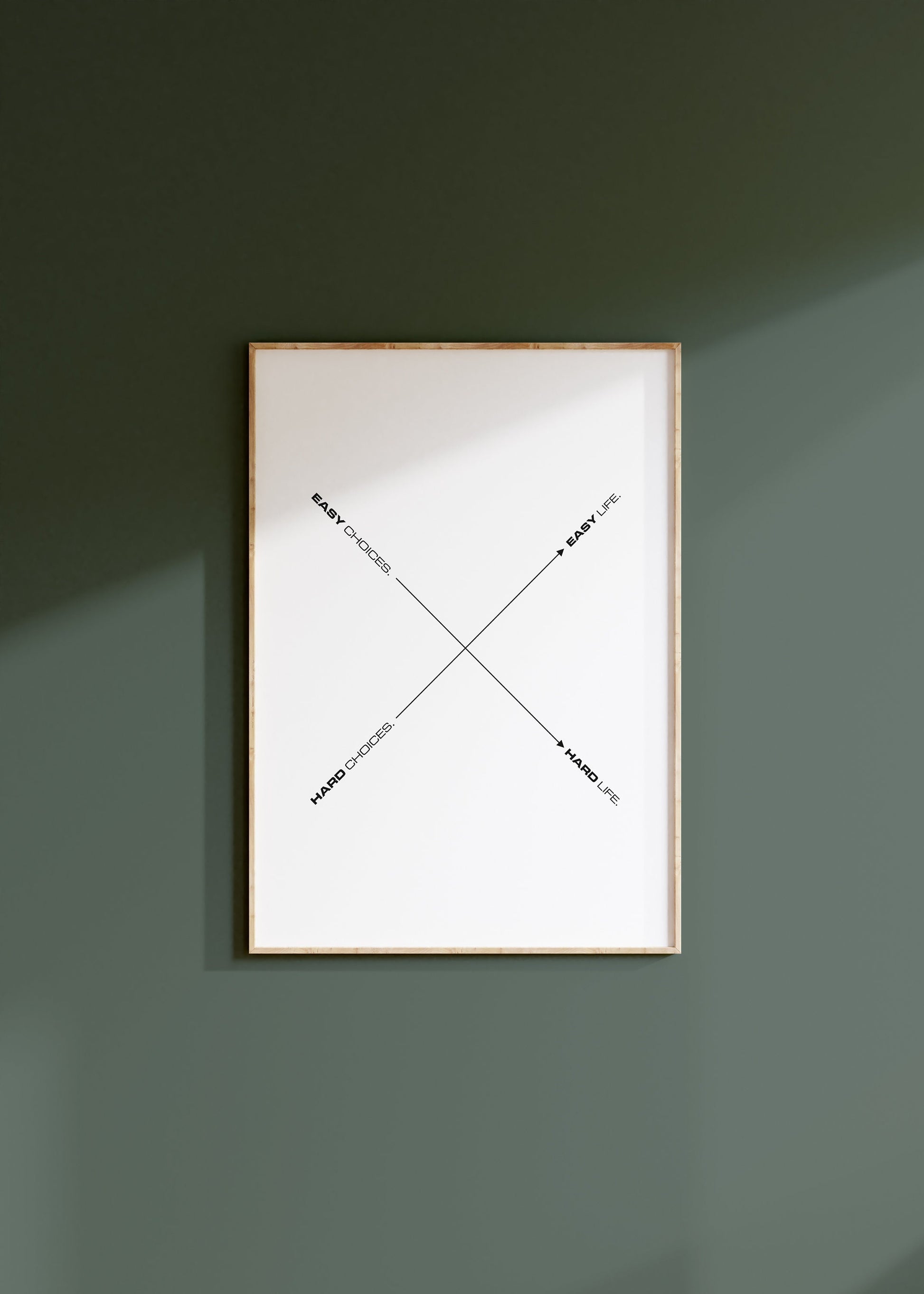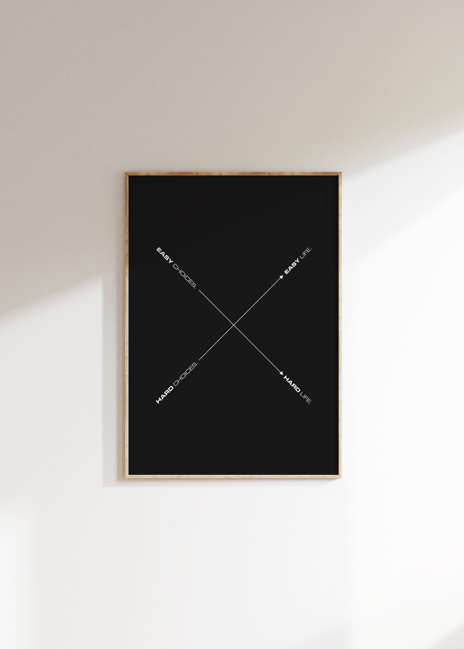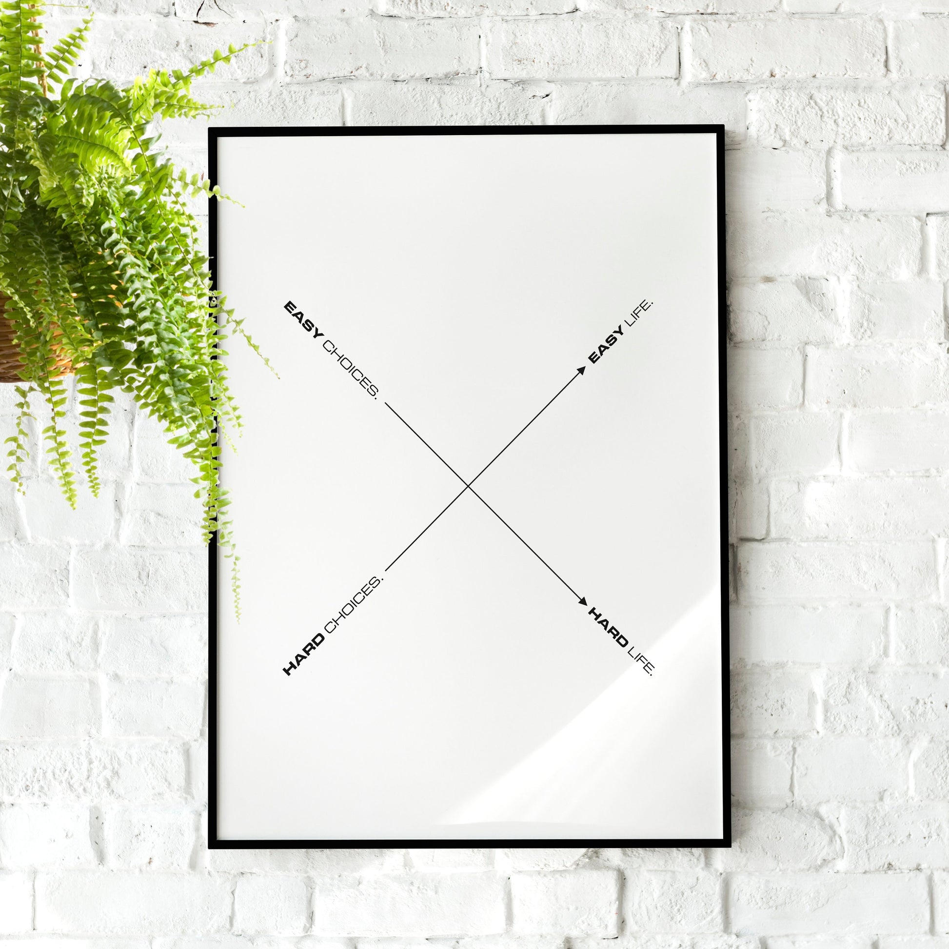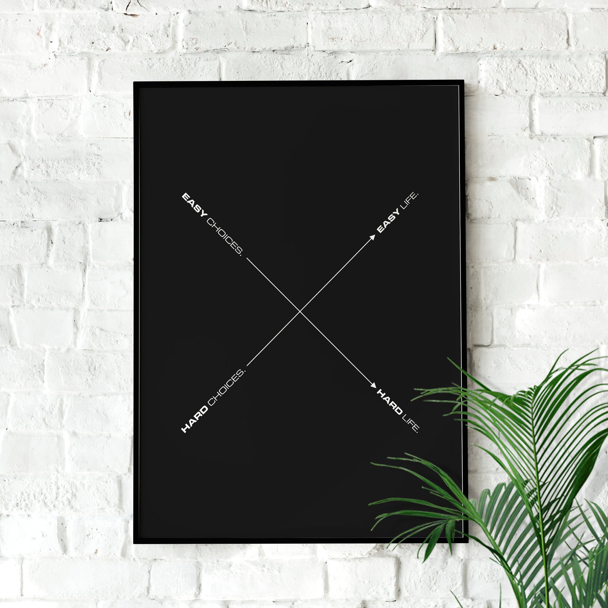 Hard Choices Easy Life | Wall art Quote, Minimalist, Wall art, Motivational, Inspirational Quotes, Motivation, Office Poster, Gym Home Décor