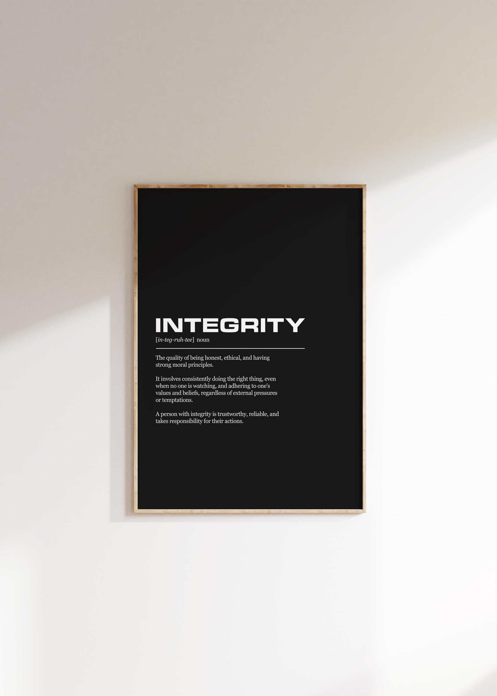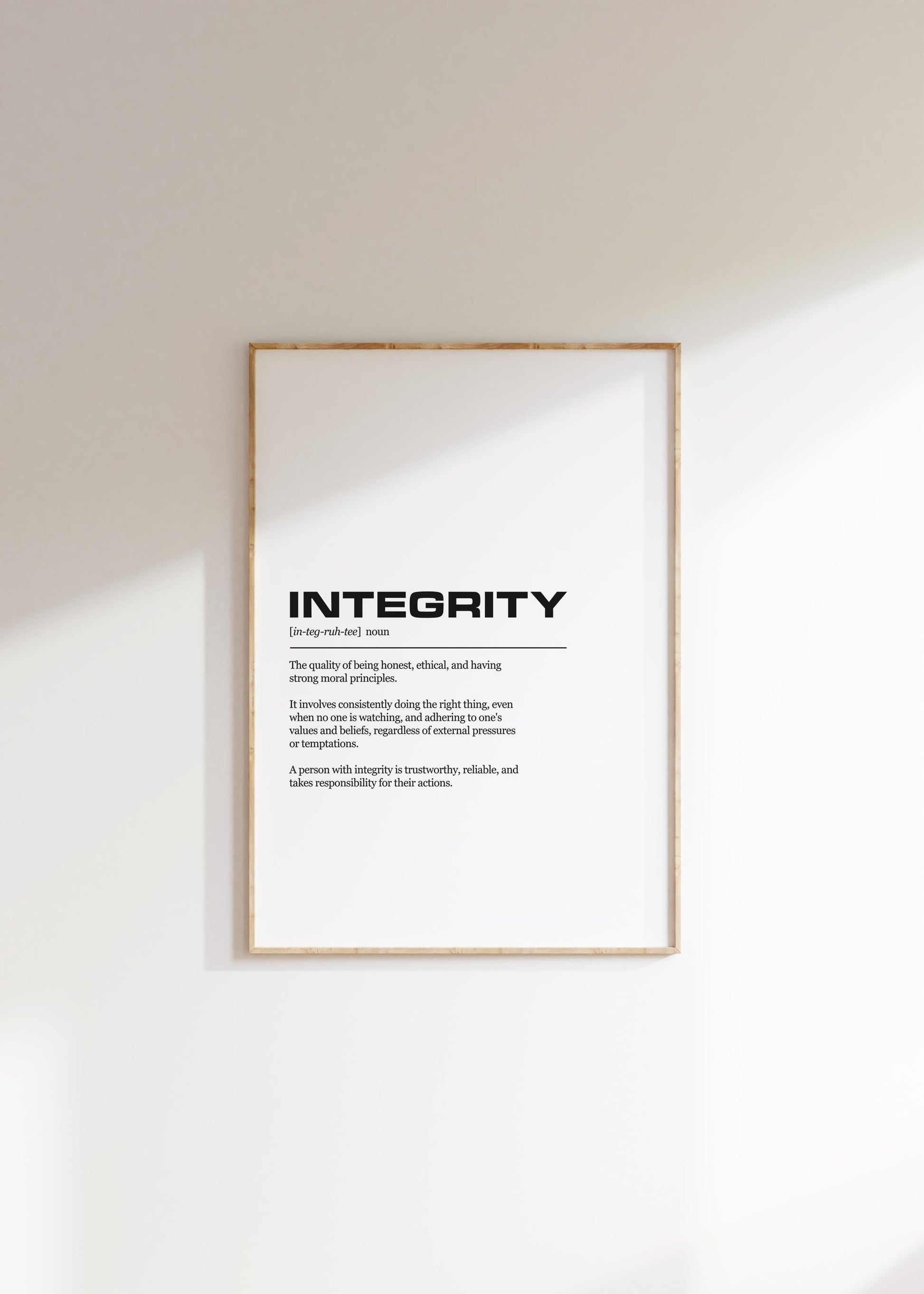 Integrity Definition Inspirational Office Poster Wall Art Print | Inspirational Quotes | Motivational Prints | Motivational Wall Decor