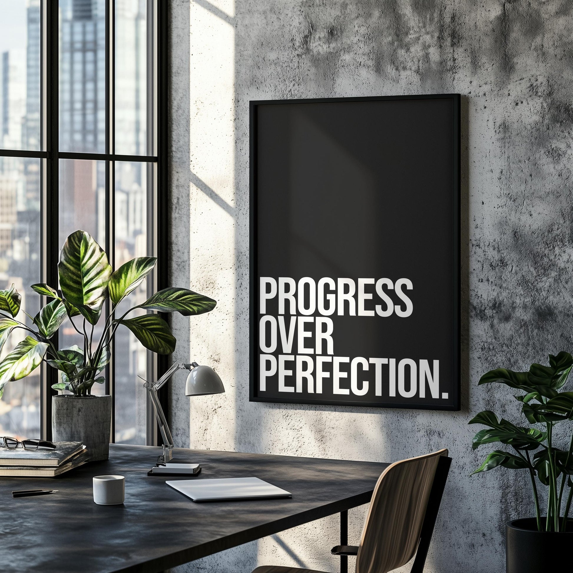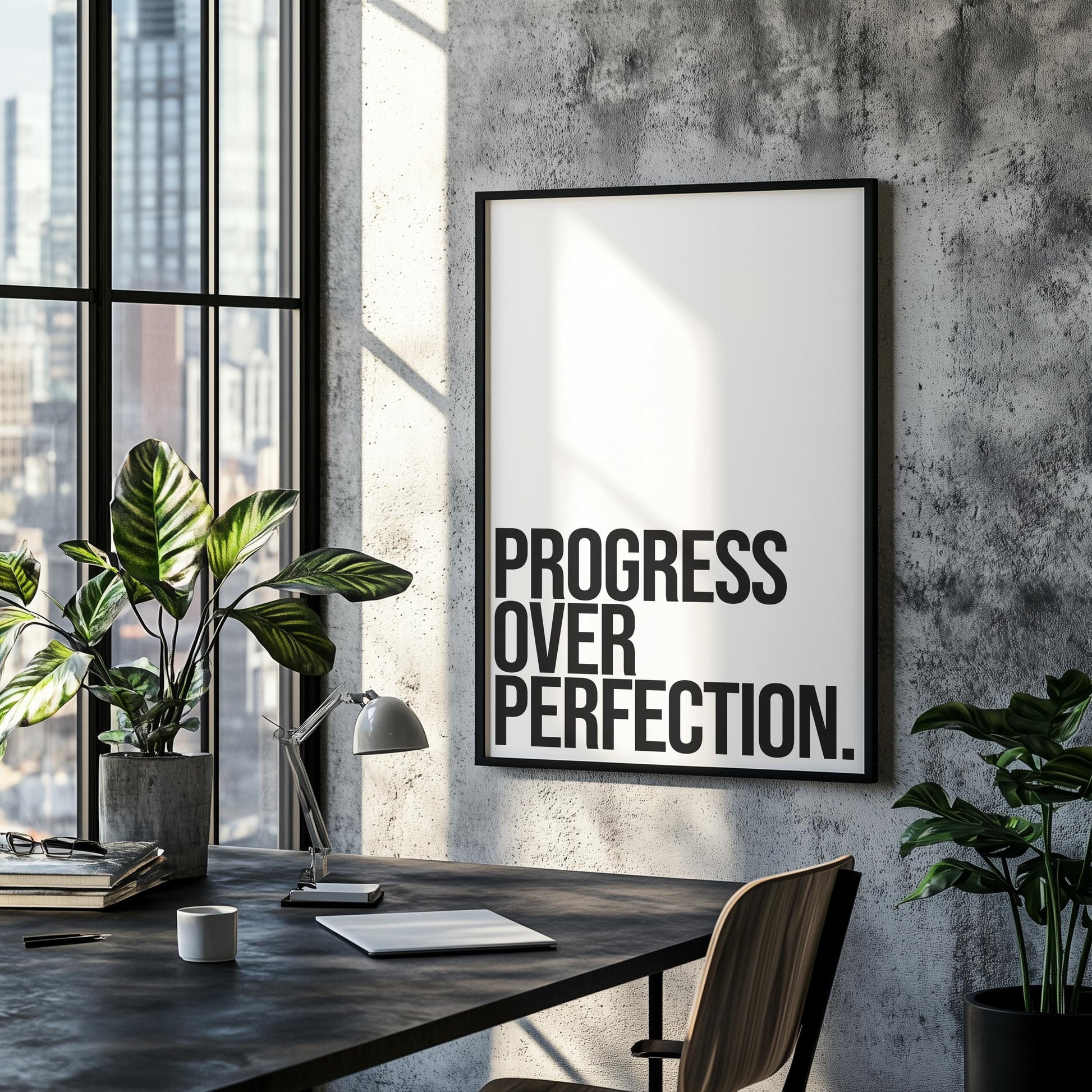 Progress Over Perfection | Motivational Poster, Wall Art, Discipline, Home Office, Gym Poster, Inspirational, Office Art, Success Quote