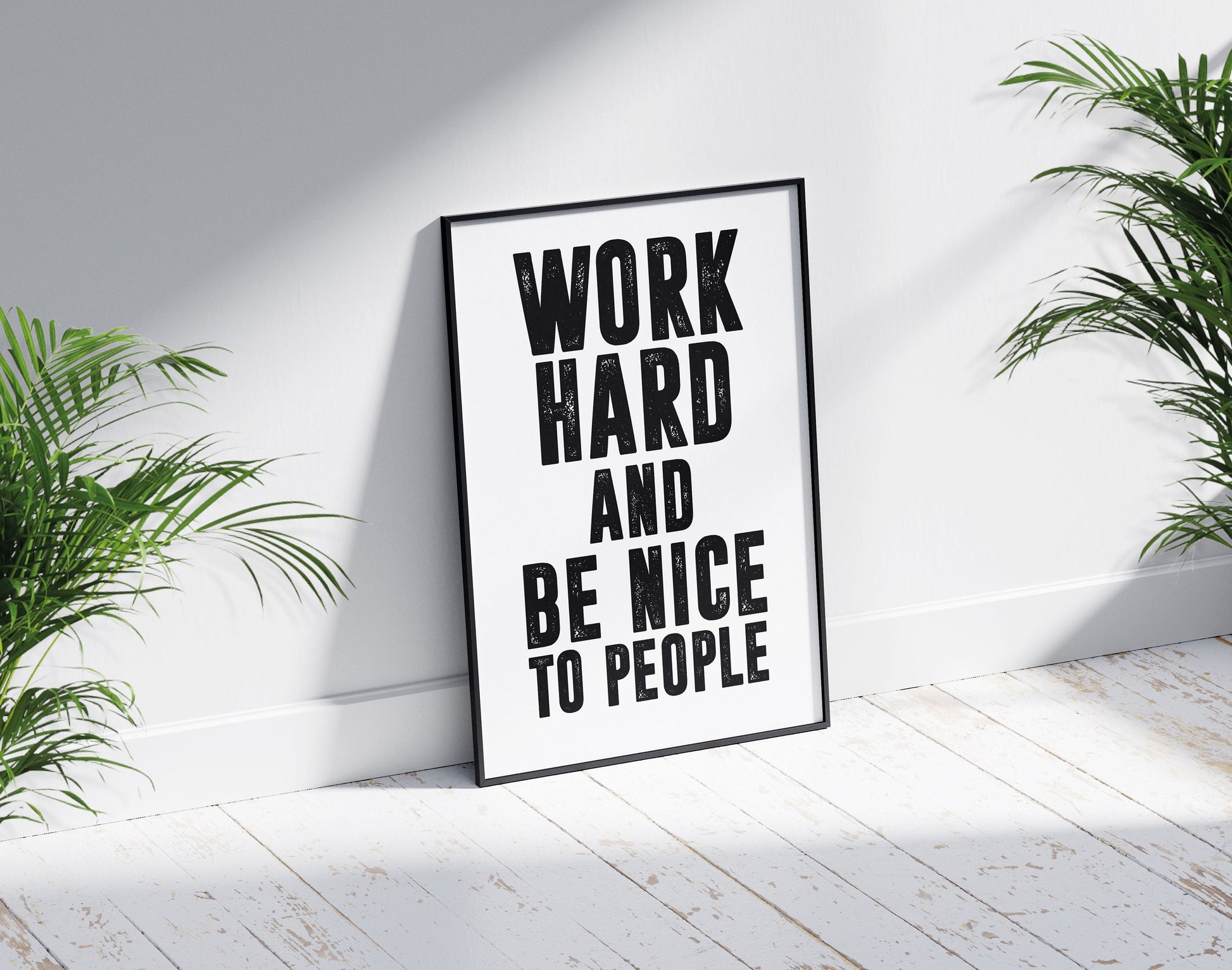 Work Hard and Be Nice to People | Motivational Wall Art, Minimalist, Office Wall Art, Home Décor, Inspirational Quotes, Motivational Poster
